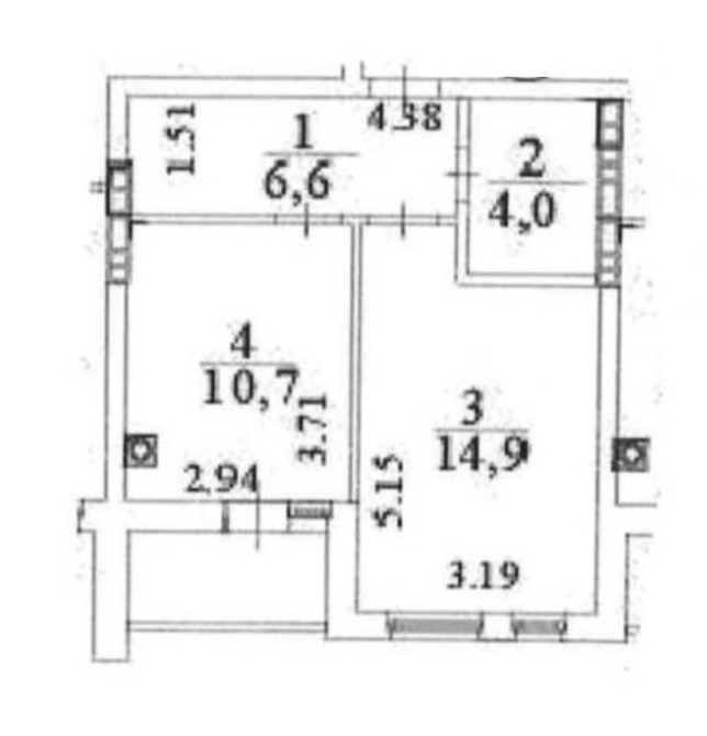 Площа: 37,7 м² / кімната 14,9 м² / кухня 10,7 м²