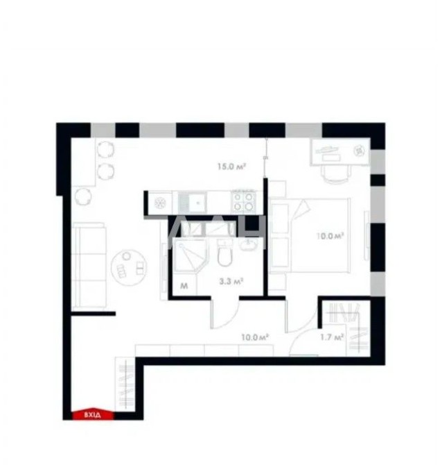 • Площадь кухни 15 м2