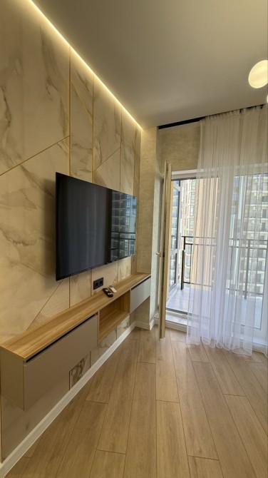 Абсолютно новая кватира с террасой, общая площадь 42кв.м., распланирована на кухню-студию и спальню. Кватира плотностью укомплектована мебелью и бытовой техникой. Состояние - заходи и живи.