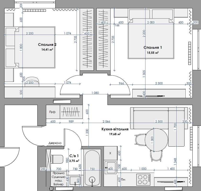 2-к квартира 54,9 м². Готова. 20 хв до метро. Розтерм-ння. Без комісії