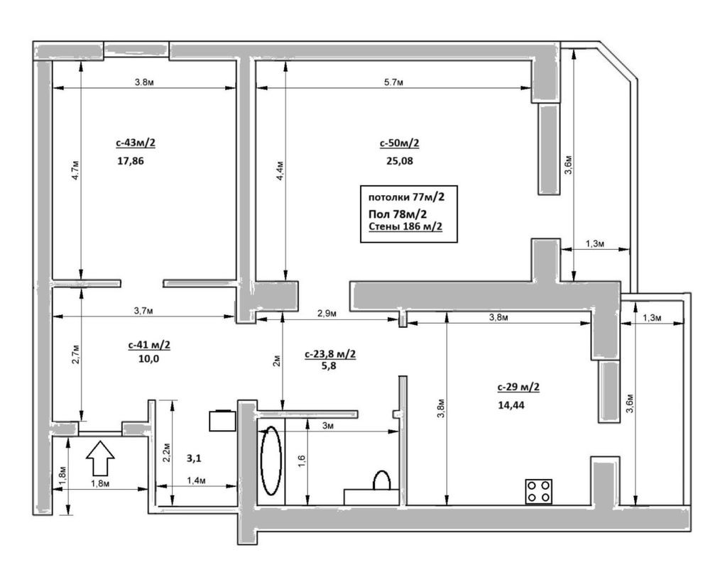 • Общая площадь 87 м2