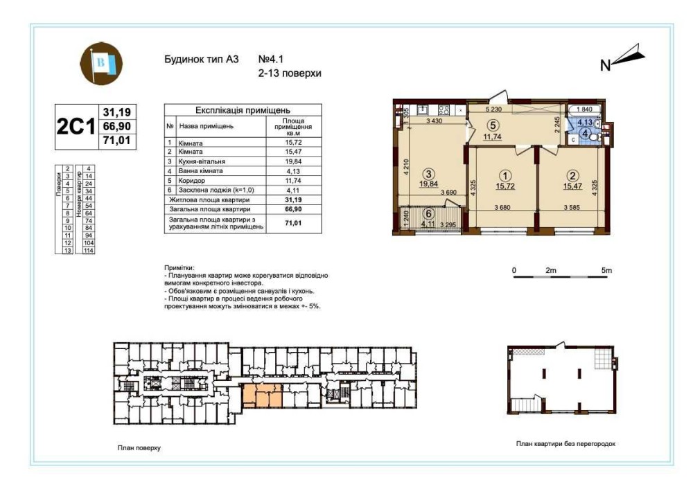 площа 71 м2