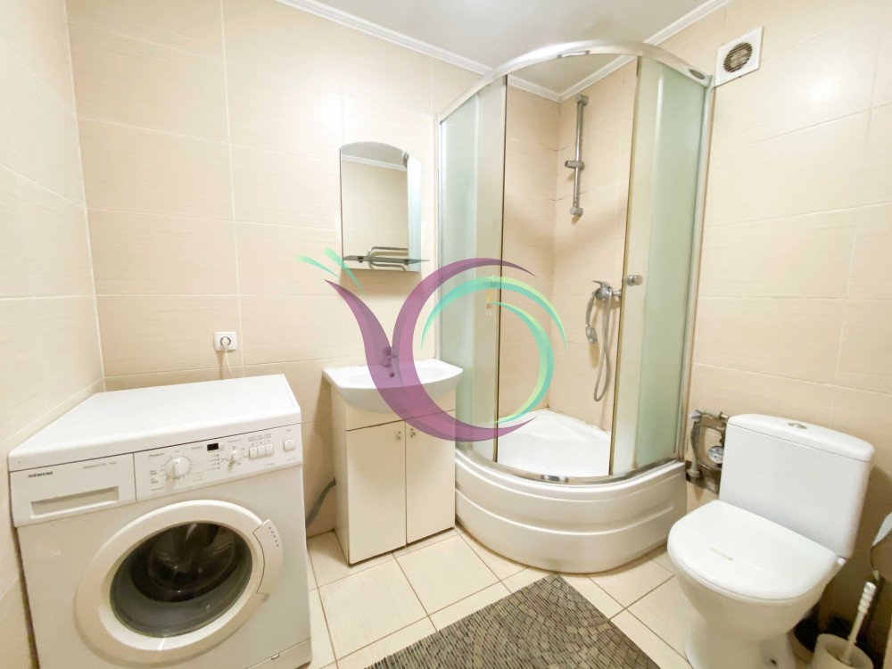Кухня обладнана необхідною технікою. У компактній ванній кімнаті є пральна машина та душова кабіна.