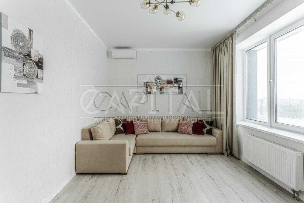 Здається в оренду простора та світла квартира з чудовим видом на Київ у ЖК бізнес-класу «Сонячна Рів’єра». Розташована на 14-му поверсі 22-поверхового будинку. Загальна площа — 70м².