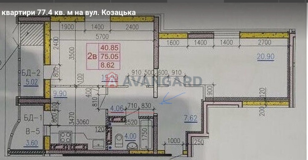 • Общая площадь 77 м2