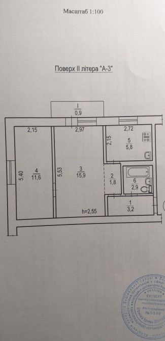 • Общая площадь 42.1 м2