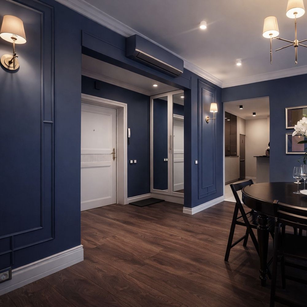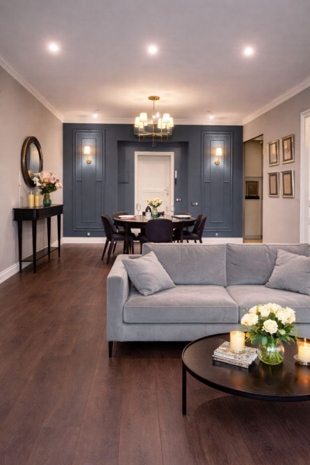 Загальна площа — 87 м². Простір оформлений у сучасному стилі, з логічним зонуванням і акцентом на зручність щоденного життя в преміальному середовищі.