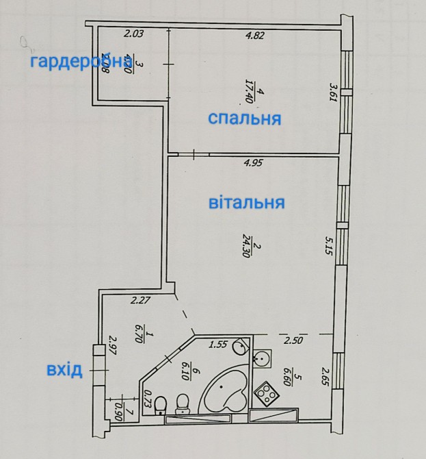 • Площадь кухни 7 м2