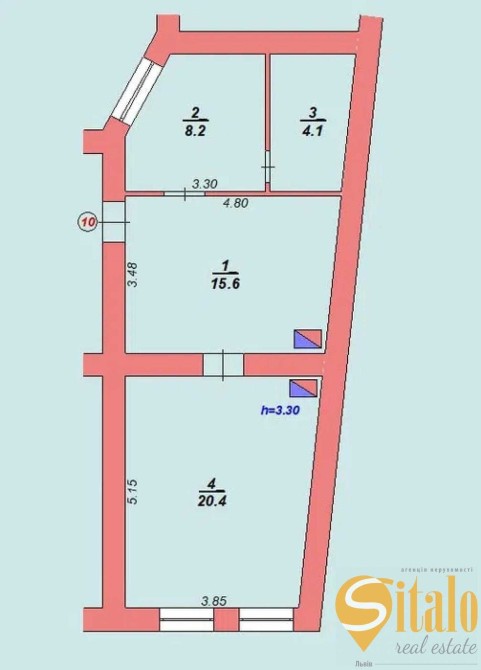 Висота стелі 3.3 м.
