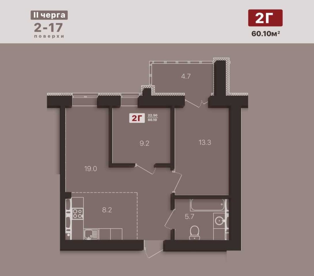 • Общая площадь 60.1 м2