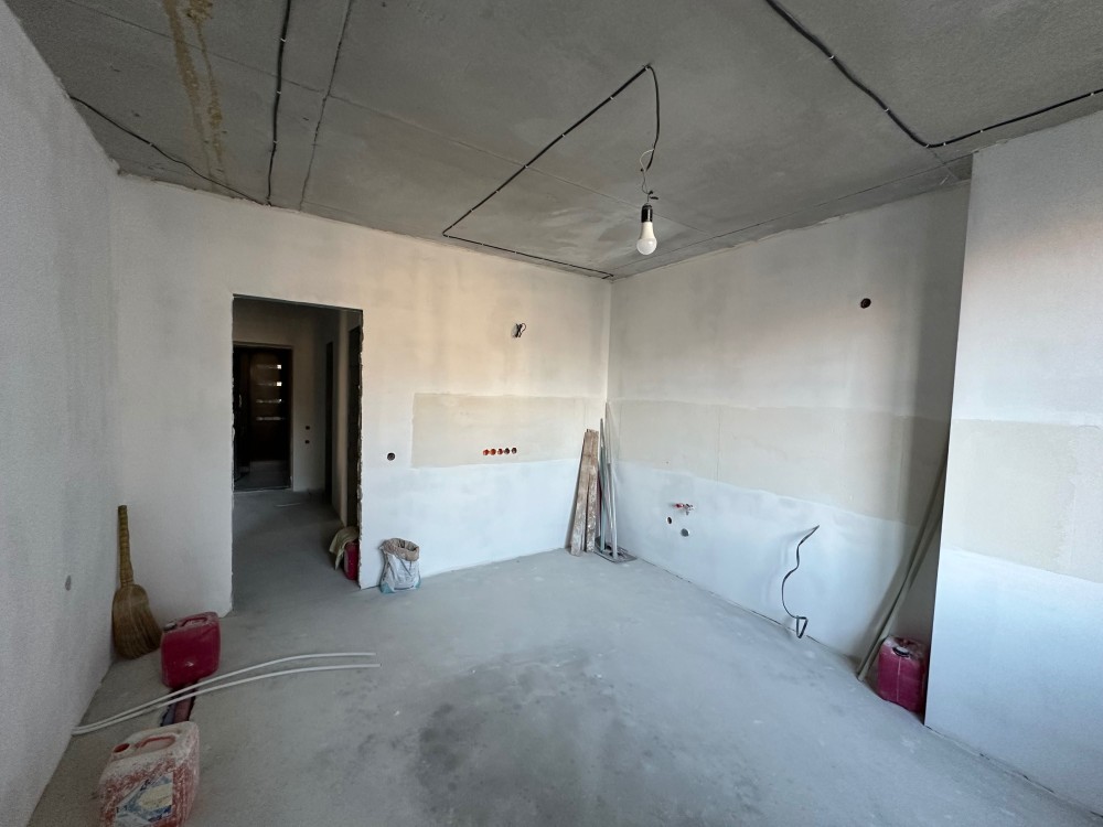 У квартирі вже зроблено опалення, проведено електрику, залита підлога, готові стіни.