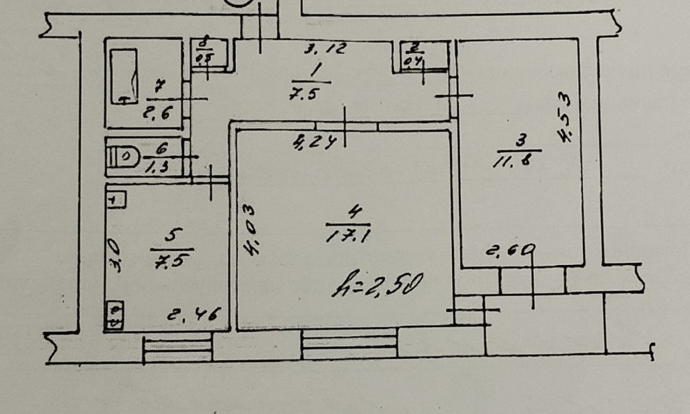 • Площадь кухни 7.5 м2
