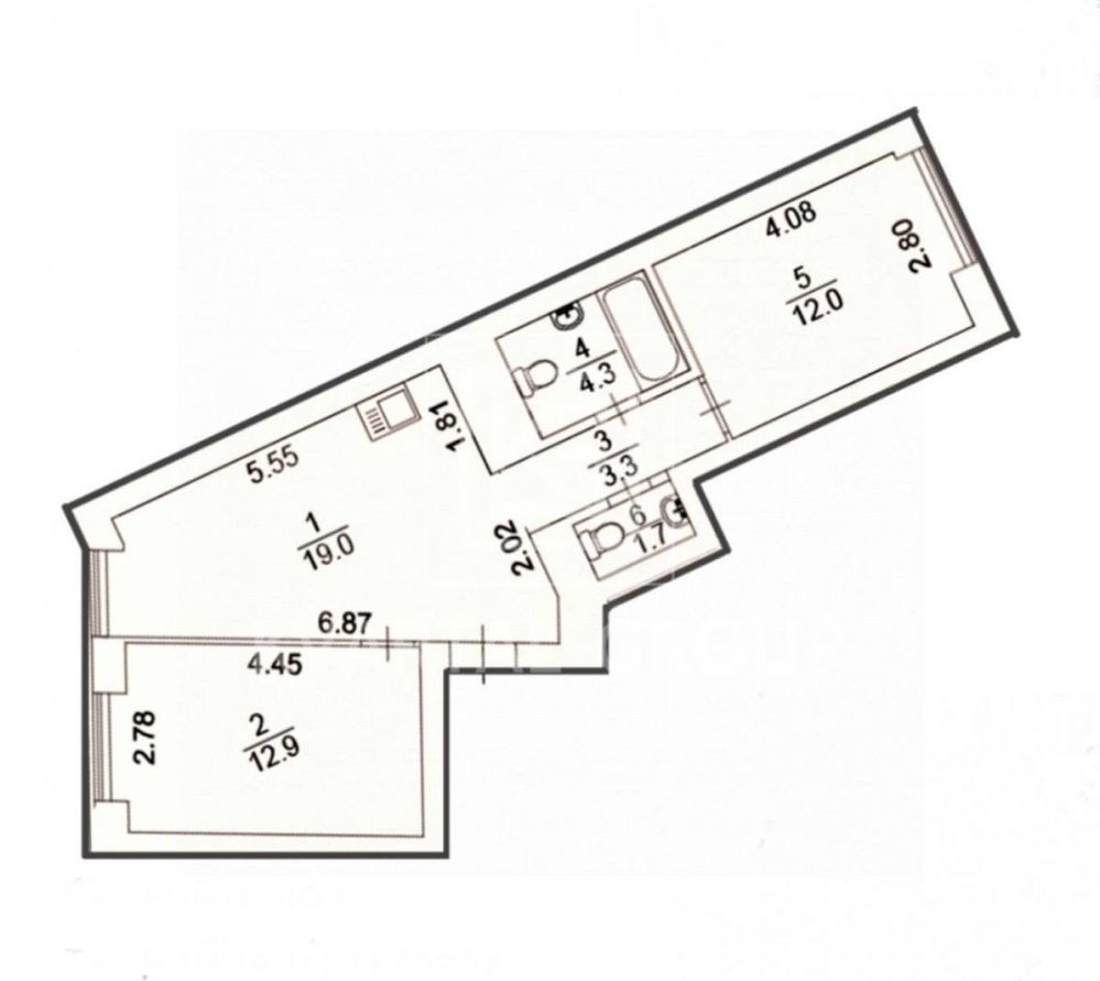 • Общая площадь 52.3 м2