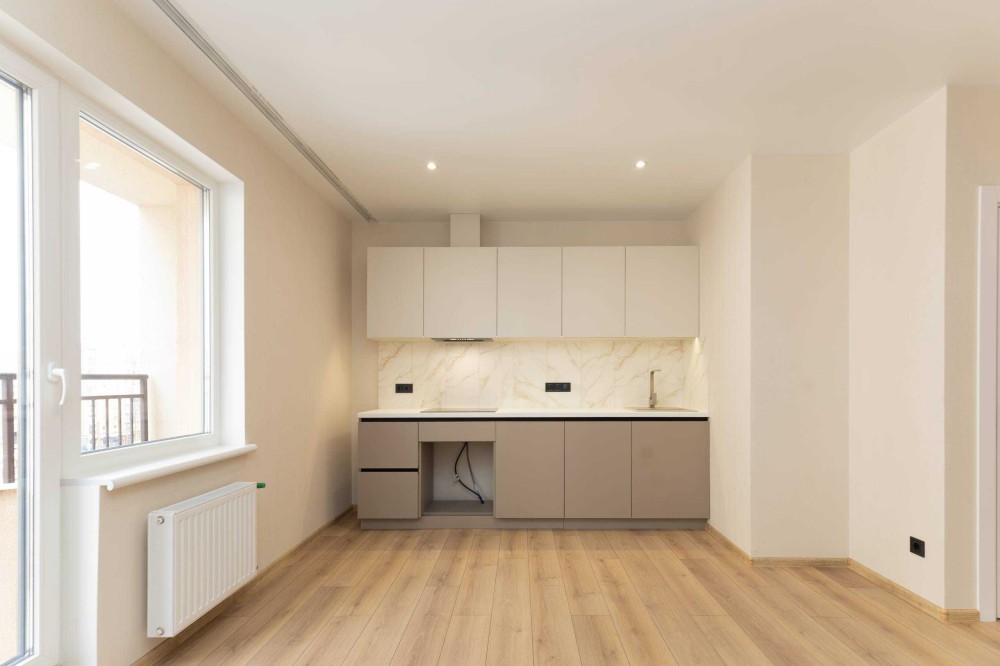 В квартире выполнен ремонт в светлых тонах, установленная кухонная мебель.