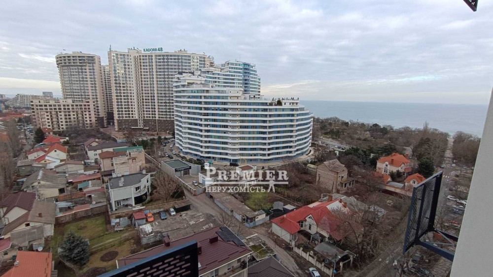 Новый автономный дом. Квартира двухсторонняя, общей площадью 55 м². Удобная планировка: две раздельные комнаты, кухня-гостиная 13,5 м², раздельный санузел. Состояние — от строителя. Панорамное остекление, вид на море.