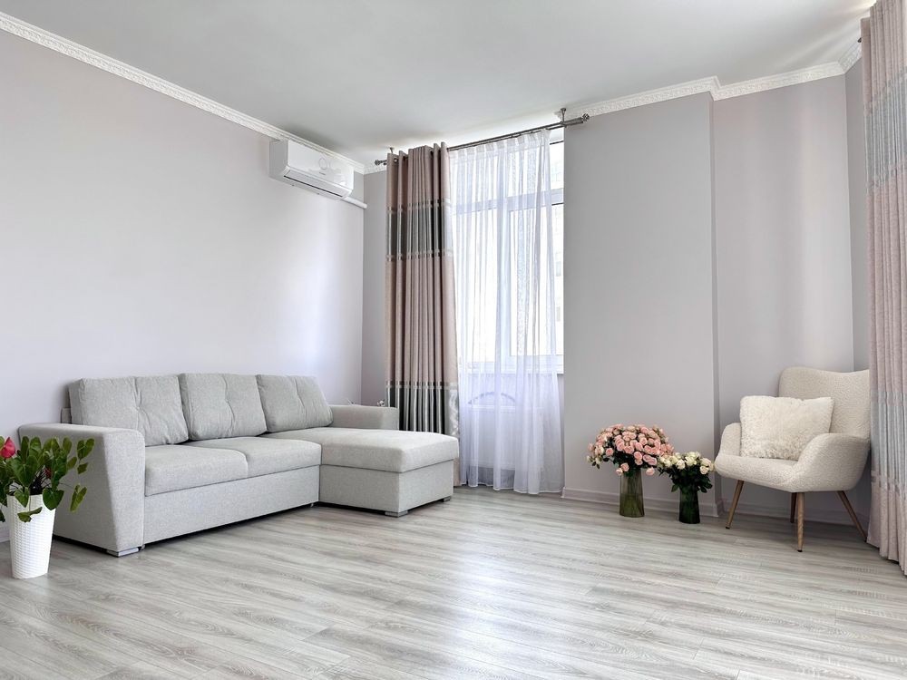 Планировка продумана до мелочей: большая кухня с современной мебелью и техникой, удобные комнаты, стильный санузел. В квартире выполнен качественный современный ремонт в светлых тонах, с использованием надежных материалов. Интерьер выдержан в едином стиле — уютно, эстетично и без лишнего.