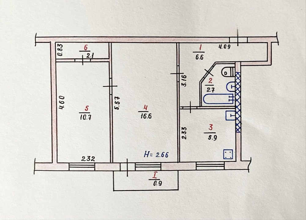 2 комнатная ул. Криворожстали, 9 район Червоной