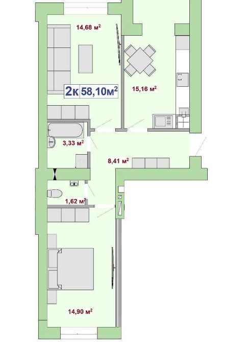 • Общая площадь 58.1 м2