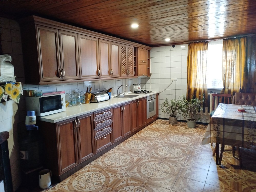 На території є господарські приміщення: газифікована літня кухня з гарним погребом, високий гараж (під бус), облаштовано вольєр для собаки, є сарай.