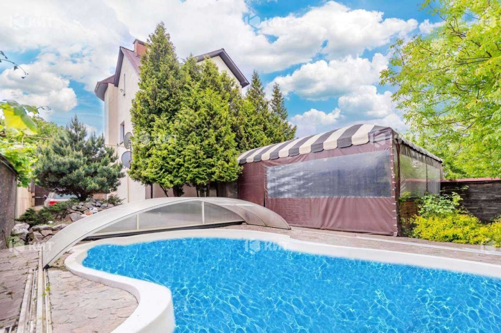 Будинок 210 м2 з меблями та технікою. Планування першого поверху: кухня студія, санвузол, передпокій. Планування другого поверху: дві спальні, санвузол. Планування третього поверху: гостьова кімната. Планування цокольного поверху, більярдне, котельне. Комунікації: світло, газ, вода центральна, центральна каналізація. Ділянка 7 соток. На ділянці Парковка для 3-х автомобілів, вольєр для собаки, велика альтанка, Басейн. .