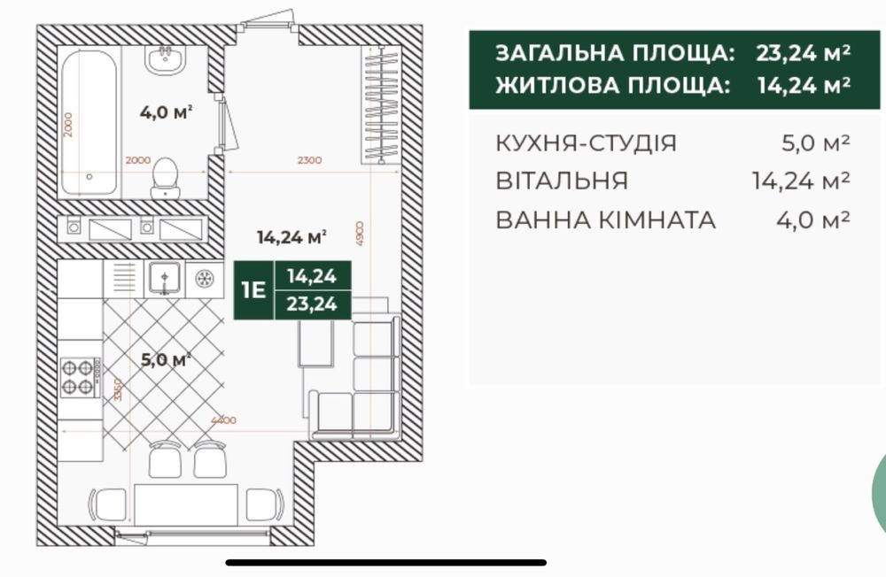 • Общая площадь 24 м2