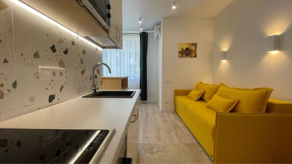 • Формат: кухня-вітальня, зона відпочинку, спальня, передпокій та санвузол