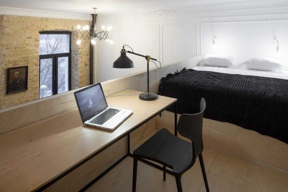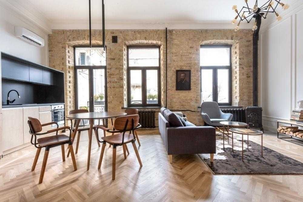 Продається квартира з дизайнерським ремонтом у самому центрі Києва. Вул. Мала Житомирська, 16/3. Загальна площа після ремонту — 50 м² в одному рівні або 57 м² з урахуванням другого рівня. Висота стелі — 3,7 м.