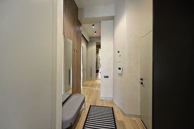 Квартира з кухнею-студією, вікна виходять на вулицю Стрілецьку. Інтер’єр виконаний у сучасному стилі: просторий санвузол із вікном, підігрів підлоги, гардеробна кімната. Уся побутова техніка від провідних брендів та меблі залишаються новому власнику.