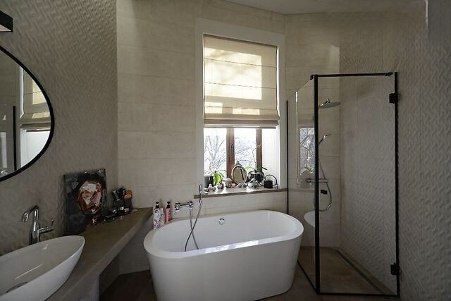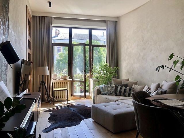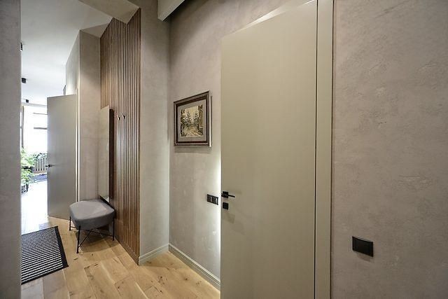 Підлога — масивна паркетна дошка з натурального дуба, висота стель сягає 3,8 метра. Є великий відкритий балкон. Доглянуте парадне, тамбур розрахований на дві квартири.