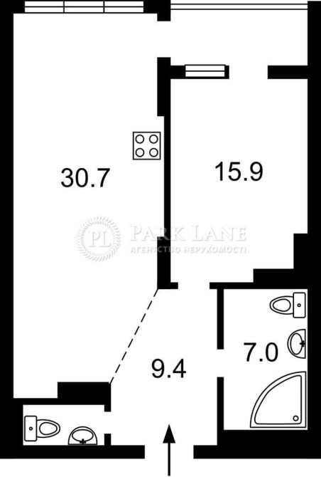 • Площадь кухни 30.7 м2