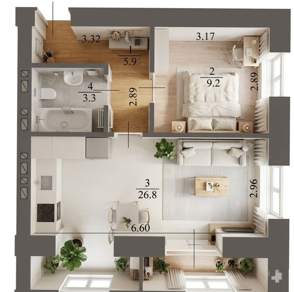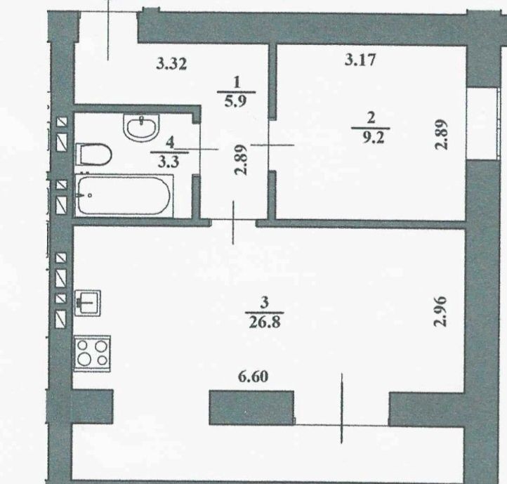 • Общая площадь 45 м2
