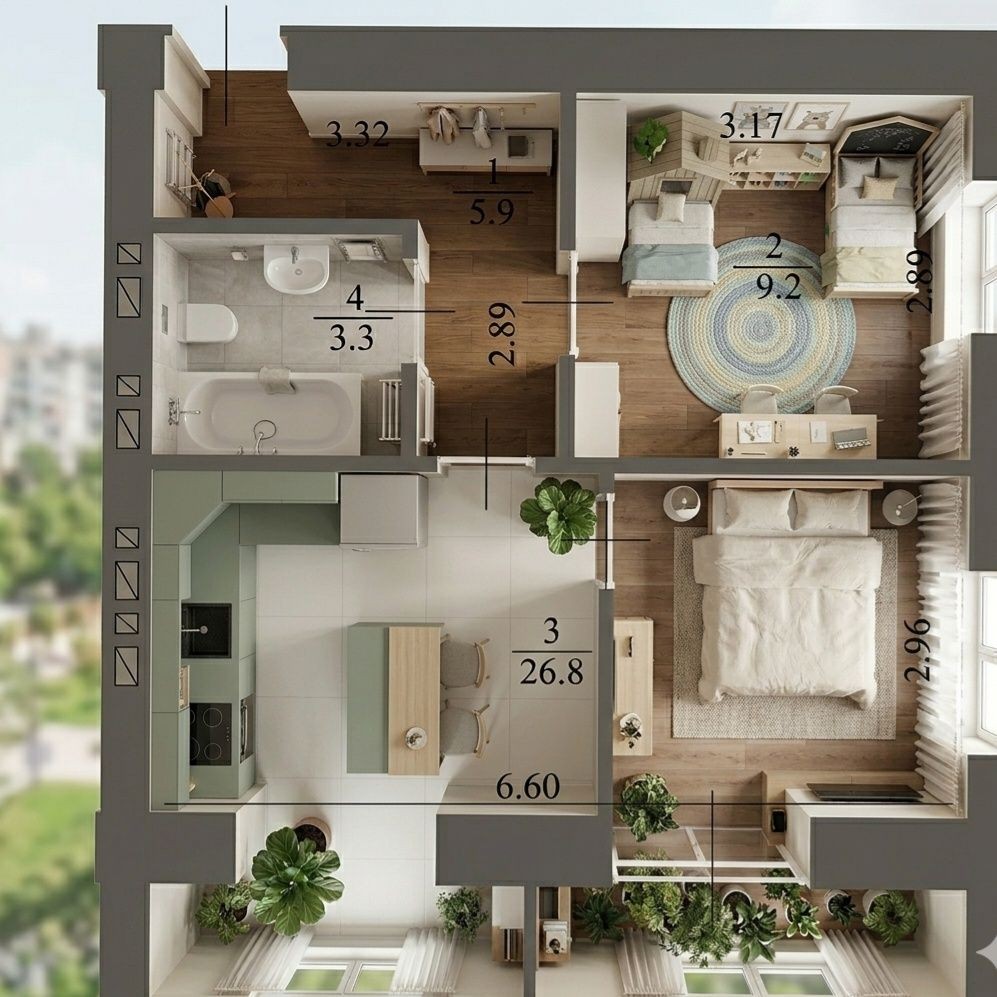 • Трехкомнатная