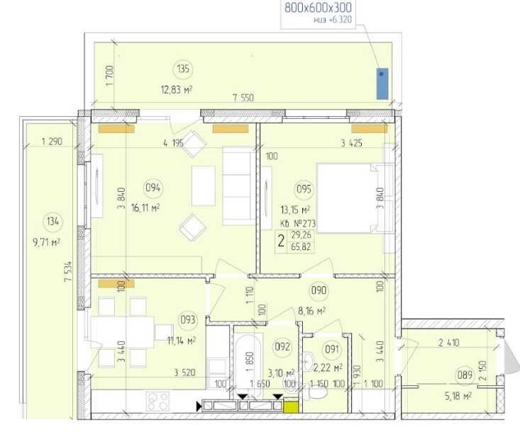 Загальна площа: 65,2 м²