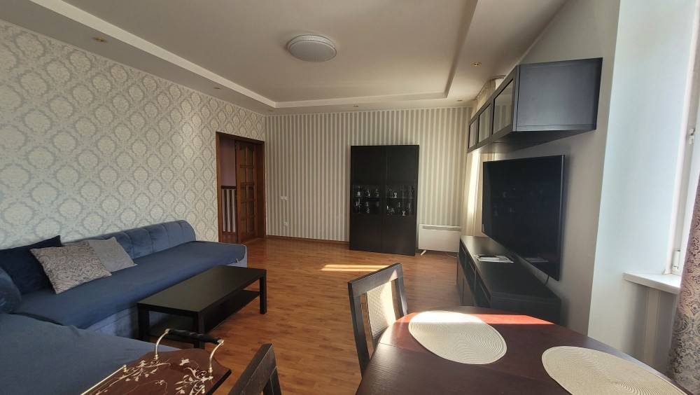 В наяності меблі та побутова техніка(холодильник, пральна машина, електроплита та духовка, мікрохвильовапіч, великий телевізор + на кухні телевізор.