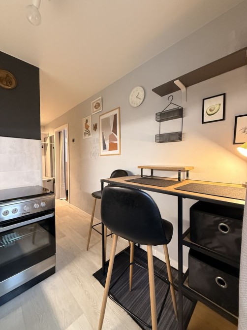 Невелика, але дуже затишна кухня з новою газовою плитою та духовкою, акуратними меблями — ідеальне місце для домашніх сніданків і вечерь.
