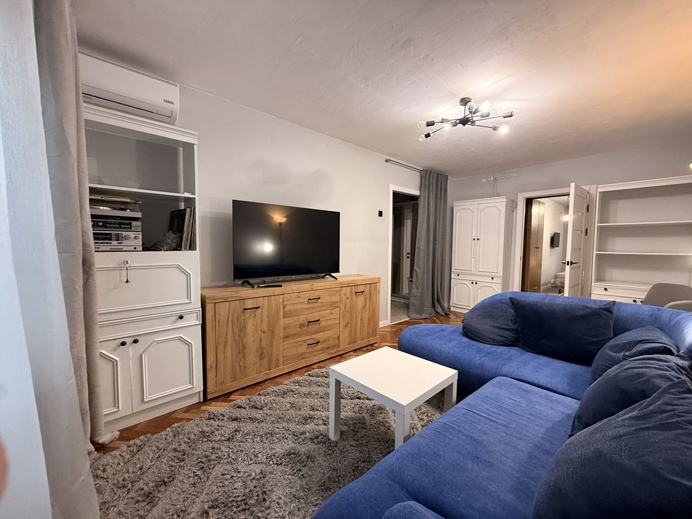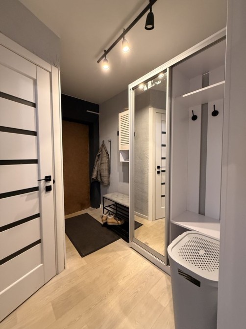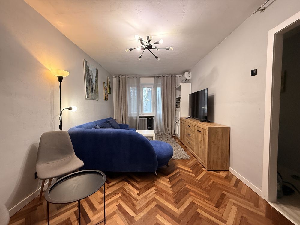 Квартира площею 43 м² продумана й простора. Велика світла вітальня може слугувати прохідною спальнею: тут є великий телевізор, кондиціонер та зручний розкладний диван для відпочинку або сну.