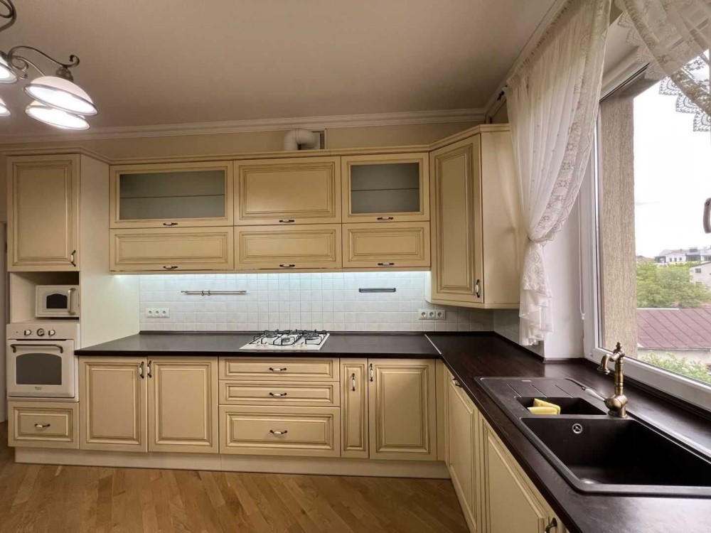 Повністю облаштована меблями та побутовою технікою (пральна машина, сушильна машина, плита, електропіч, мікрохвильова піч, посудомийка, та ін.). Кондиціонер.