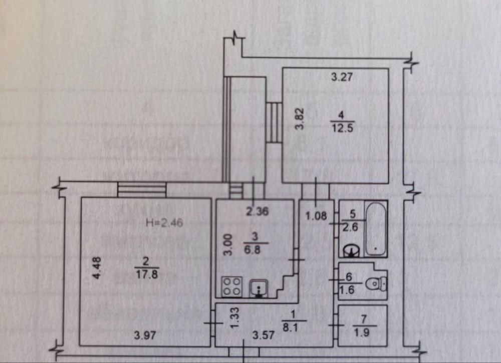 • Площадь кухни 6.8 м2