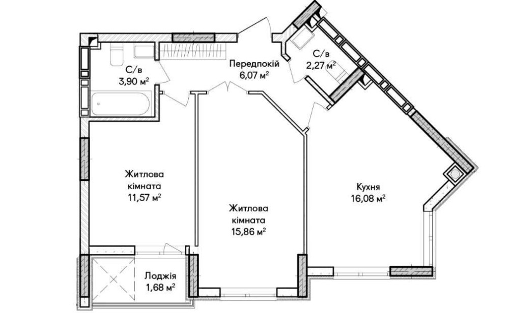 • Общая площадь 58 м2