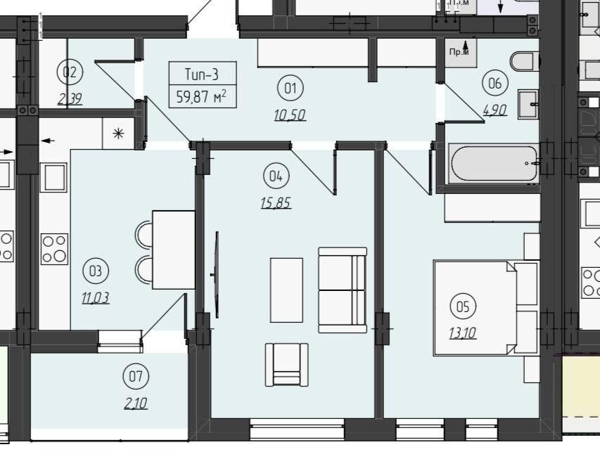 • Общая площадь 62 м2