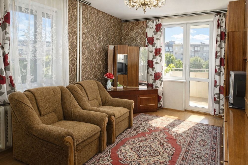 Продаж квартири біля зупинки громадського транспорту. Також поруч ринок, торгівельний центр, кавʼярні, аптека, банк. Квартира має цікаве планування. Дві окремі кімнати. Велика лоджія. Санвузол роздільний. В туалеті труби замінені.