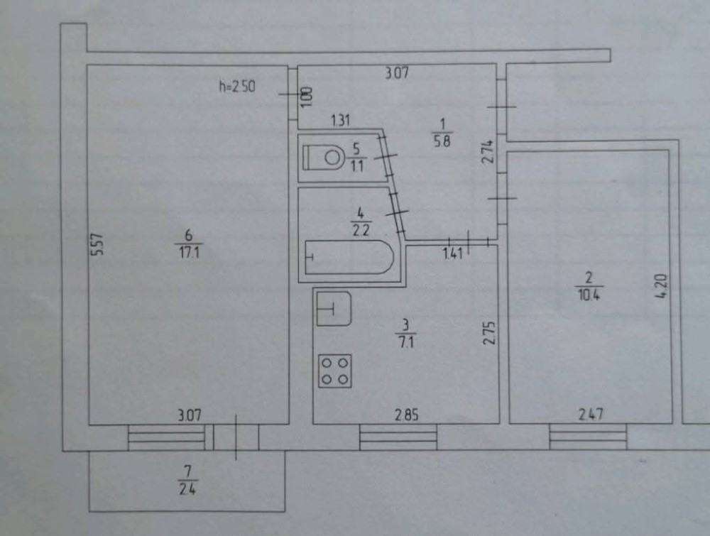 • Площадь кухни 7 м2