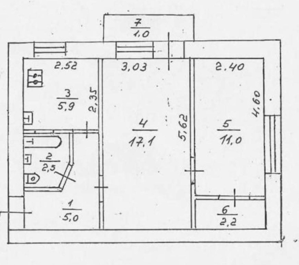 • Площадь кухни 6 м2