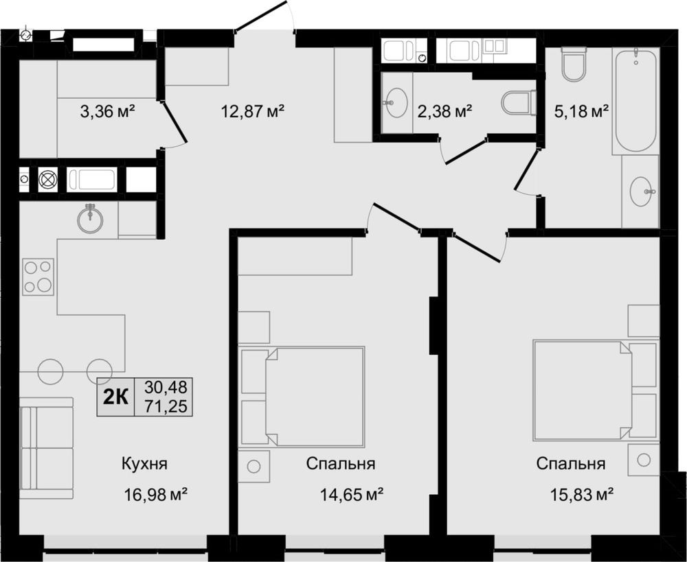 • Общая площадь 71.25 м2
