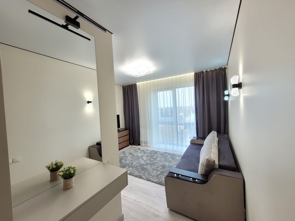 Оренда сучасної квартири-студії в ЖК Акварелі-2. В кімнаті: розкладний диван, телевізор, кондиціонер, письмовий стіл, шафа, комод. Кухня обладнана необхідною технікою. Просторий балкон-лоджія. Санвузол з ванною, встановлений бойлер. Чудова інфраструктура: в пішій доступності декілька супермаркетів (Новус, АТБ), безліч продуктових крамниць та кавярень. Вартість оренди 12000 грн. Умови оренди:оплата за два місці+послуги рієлтора (50%). комісія: 50%