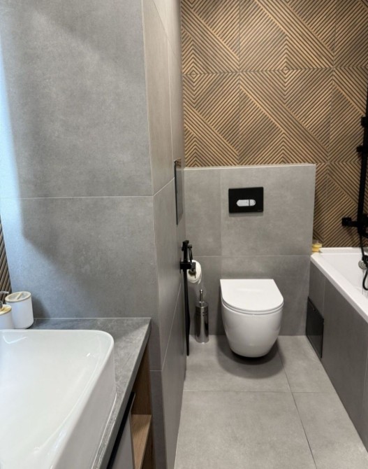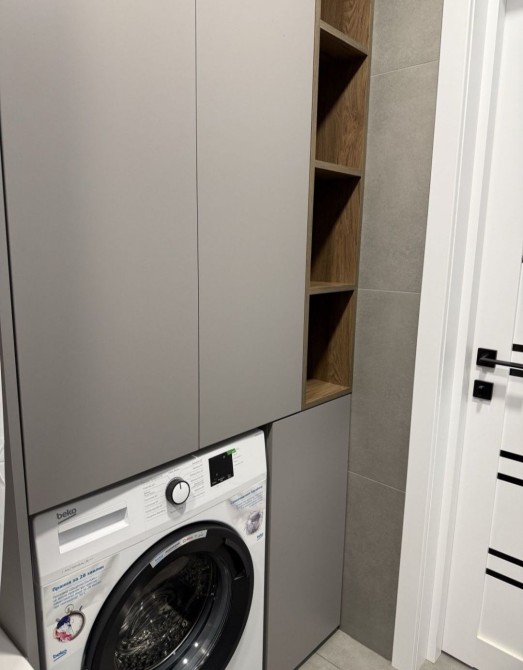 санвузол укомплектований пральною машиною сушильною иашинлю та бойлером. В квартирі зроблений якісний ремонт та укомплектована вміма меблями та технікою: вбудована кухня, силовий блок з духовою шафою, мікрохвильовкою, аитяжка, варильна плита, кондіционер. В квартирі багато меблів шафи, ліжка, дивани, комоди та інше.