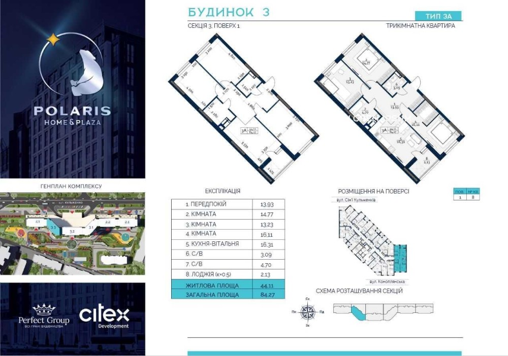 Загальна площа — 84 м²;