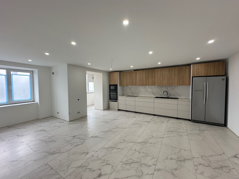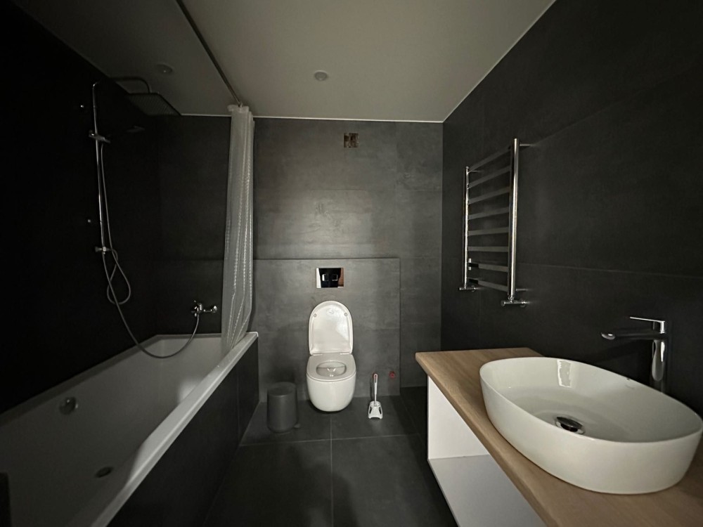 У квартирі виконано сучасний ремонт, який практично завершений. Кухня обладнана меблями та побутовою технікою. На підлозі покладена широкоформатна плитка 120×60, а по всій квартирі встановлено систему підігріву підлоги.