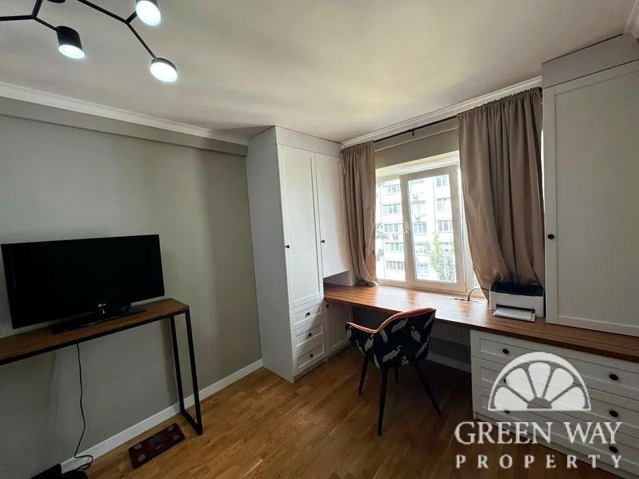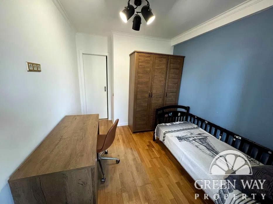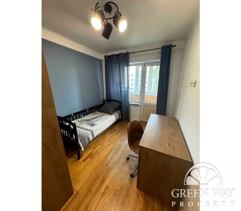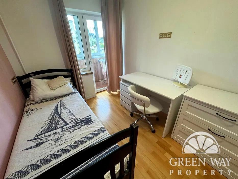 Три окремі спальні: 2 дитячі та майстер-спальня, кухня гостьова кімната з великим розкладним диваном, два санвузли, гардеробна кімната та балкон на три кімнати з трьома виходами на нього. Квартира двостороння, дуже тепла й затишна.