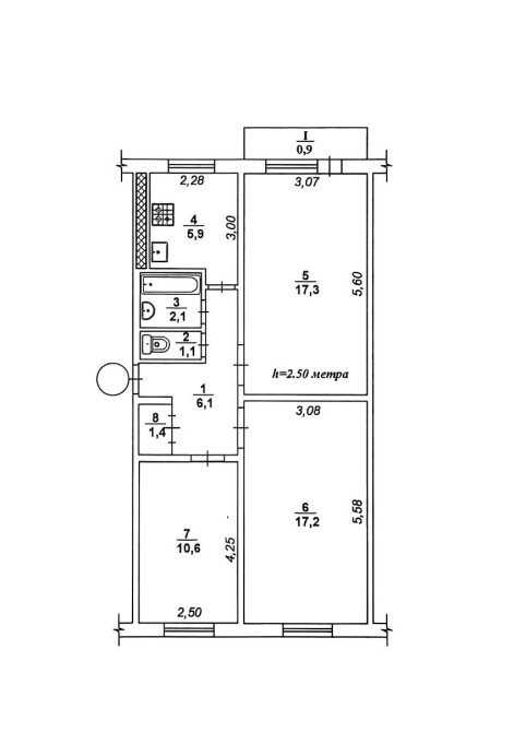 3 комнатная квартира - брежневка с раздельными комнатами